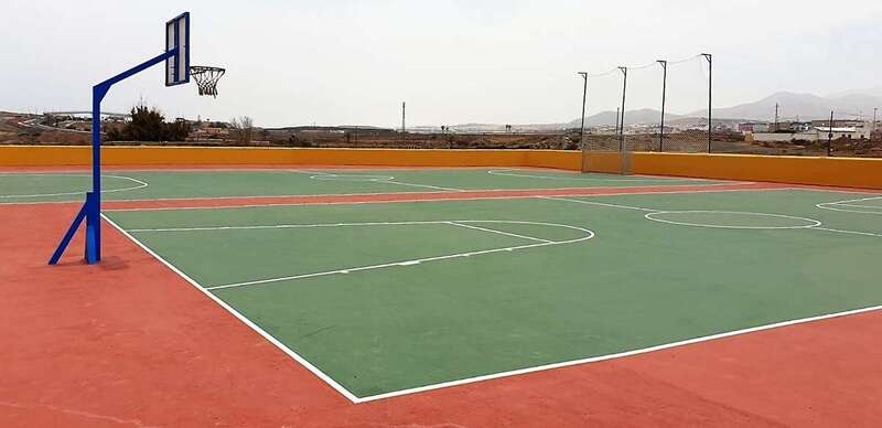 La actuación ha consistido en la reparación del pavimento y muro perimetral, así como su pintado y trazado para las modalidades de baloncesto y fútbol sala. Además, se han colocado redes y pivotes para evitar el acesso de vehículos.