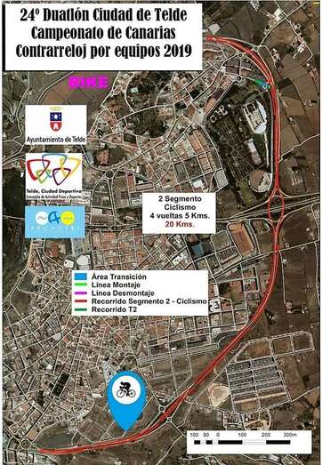 Los participantes se enfrentarán a un circuito "duro y exigente", según la Concejalía de Actividad Física y Deportes de Telde, que no ha variado con respecto al de las últimas ediciones. Se divide en tres segmentos. Primero, uno de carrera a pie de 5 kilómetros de distancia por los barrios de San Juan y San Francisco. Un segundo de ciclismo, de 20 kilómetros, por la circunvalación (GC-100) y un tercero de 2,5 kilómetros de carrera a pie por el parque urbano de San Juan.