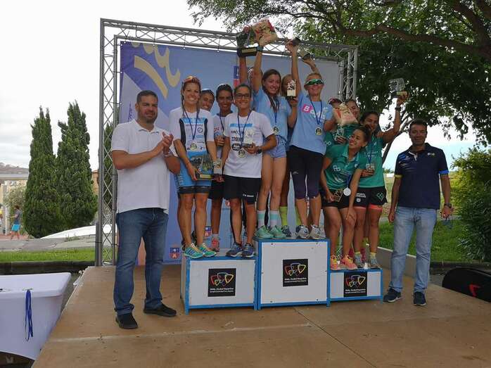 En féminas la victoria sería para el Bayliss Multisport Lanzarote, con un tiempo de 1:10:17. La segunda plaza se la llevó el Club Natación Reales (1:10:37) y la tercera, el Universidad Fernando Pessoa SD (1:16:15).