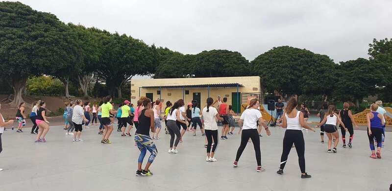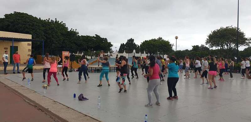 Telde.- La clase magistral de Zumba que organizó este sábado la empresa Lude Servicios en la cancha del Parque Urbano de San Juan obtuvo una gran respuesta de seguidores de esta disciplina de baile y ejercicios.