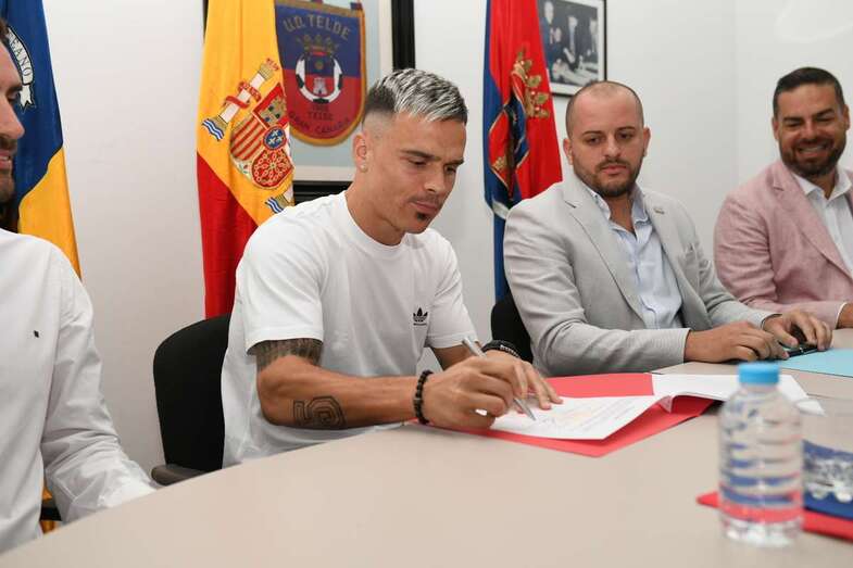 Telde.- La UD Telde y el futbolista teldense Roque Mesa Quevedo firmaron este viernes, en la sede de la entidad, un acuerdo destinado a la renovación completa del material deportivo para los equipos de la base.