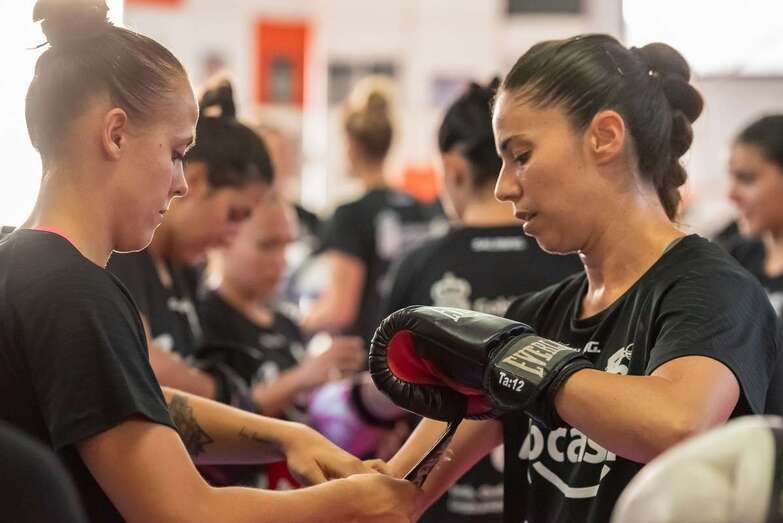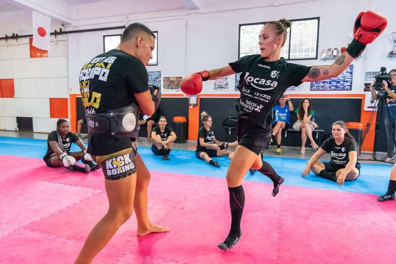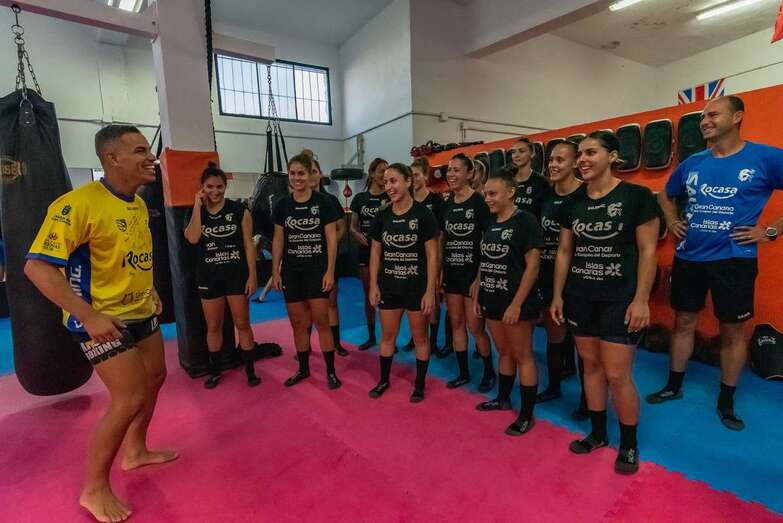 El peleador, Yeray el Coleta, dirigió una sesión preparatoria diferente en la que las jugadoras del Rocasa Gran Canaria pudieron comprobar en primera persona los beneficios de la práctica del arte marcial del Kick Boxing, en el Club Coleta, una experiencia revitalizadora que las Guerreras de Telde han podido vivir por segundo año consecutivo.