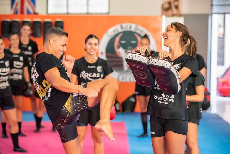 Las jugadoras disfrutaron a lo grande de una experiencia enriquecedora que las permitió salir de la rutina diaria de entrenamientos y al tiempo conocer más de cerca otro deporte de tanto arraigo en las Islas Canarias como es el Kick Boxing y más pudiendo hacerlo de la mano de Yeray "el Coleta, un maestro experimentado y de un gran prestigio en el mundo del deporte de contacto.