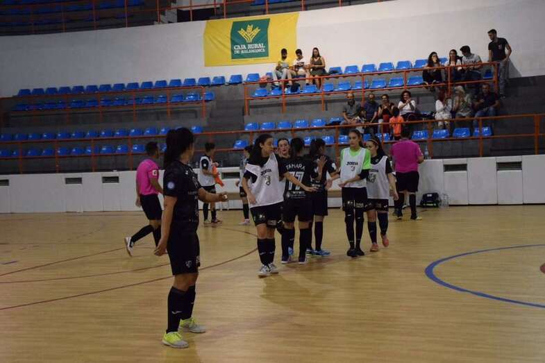 Los tantos anotados por Marina Benete (2) y Carolina Chinea, en los minutos 28, 33 y 34, respectivamente, han acabado con la firme resistencia del conjunto charro, recién ascendido a la categoría, que anotó su único gol a cinco segundos del final, cuando optó por actuar con portera-jugadora.