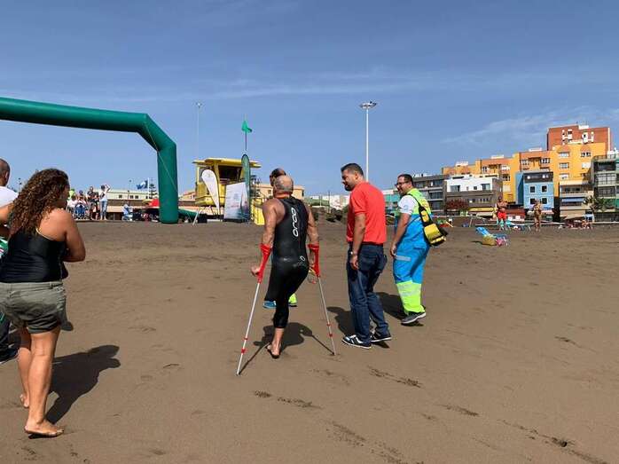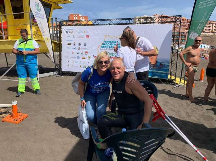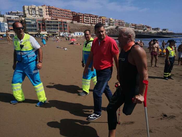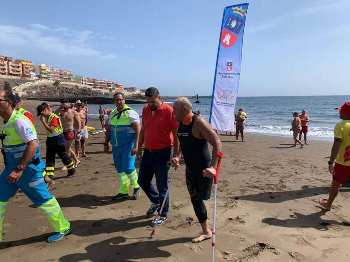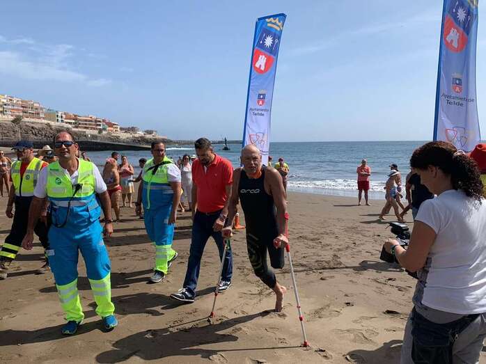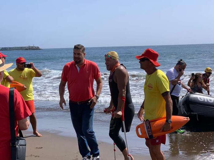 Telde.- Carmelo Santana Sánchez completó este miércoles la segunda etapa de su Travesía a Nado Isla de Gran Canaria, entre la capitalina bahía de San Cristóbal hasta la playa teldense de Melenara. Una gesta con la que este experimentado nadador del Club Deportivo Sin Barreras Sport Driving, que tiene una pierna amputada, quiere reivindicar la plena inclusión en el mundo del deporte para todas aquellas personas con diversidad funcional.