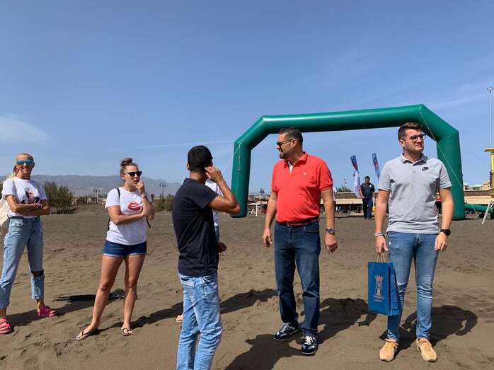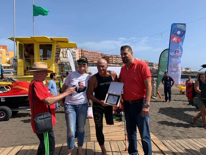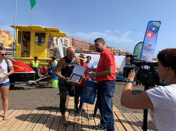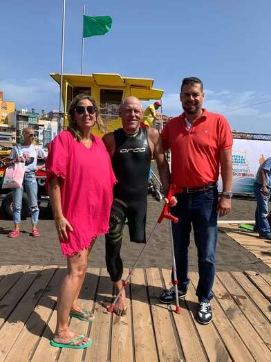 A su llegada a Telde fue recibido entre aplausos por el concejal de Actividad Física y Deportes, Diego Ojeda; el exatleta paralímpico en Barcelona 92 y Atlanta 96 Juan Carlos Hernández Sosa, a la sazón presidente de COCEMFE Canarias, vicepresidente de CERMI Canarias y presidente de la Federación Canaria de los Deportes para Personas con Discapacidad y también por varios deportistas del Club de Natación Ciudad de Telde.