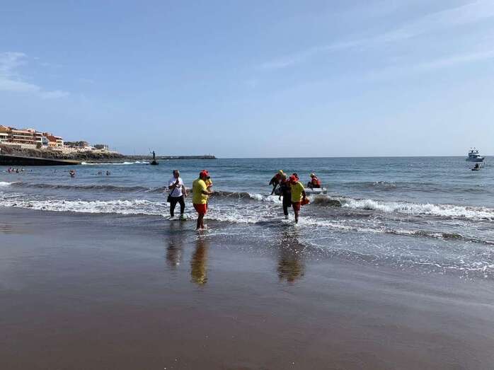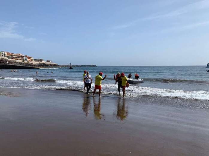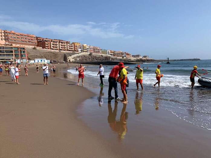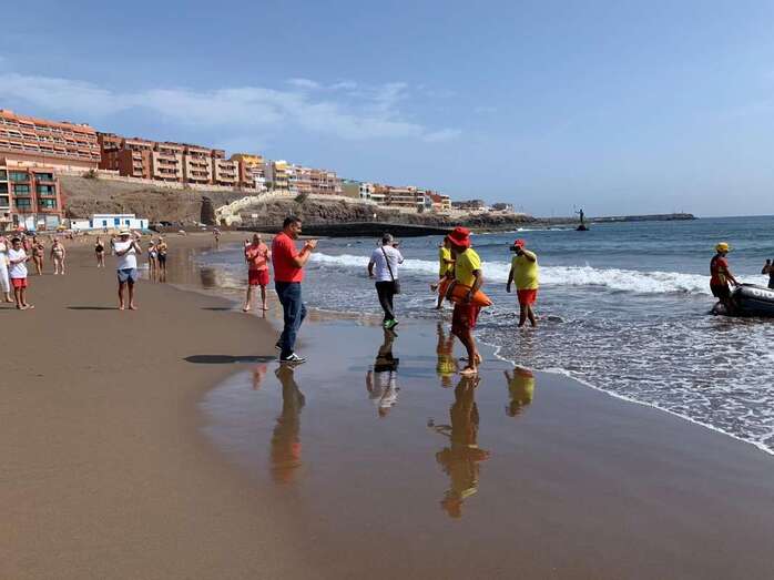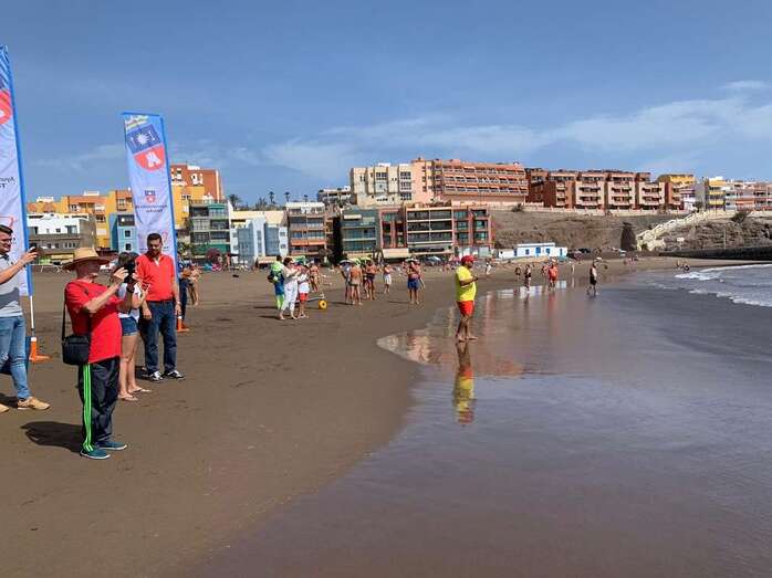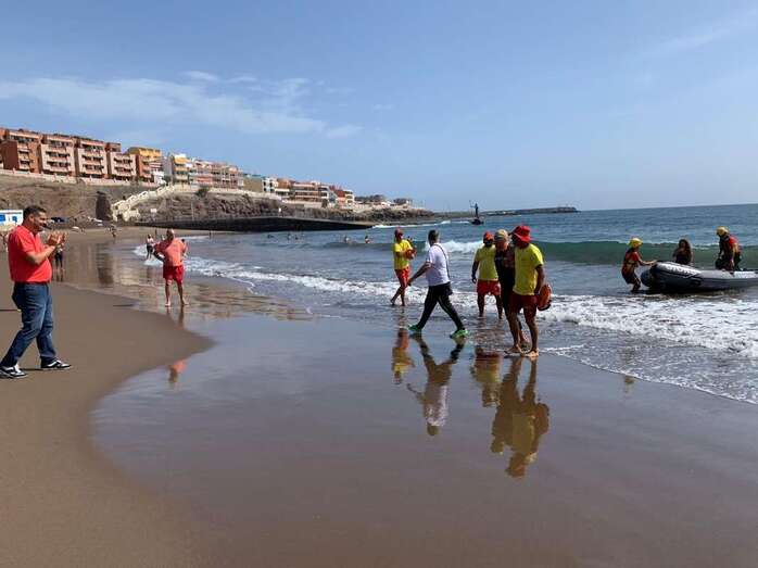 Jaleado por varios incondicionales que lo esperaban a pie de playa, Carmelo Santana arribó a eso de las 12.30 horas a la cala teldense, después de recorrer brazada a brazada, en un tiempo de unas cuatro horas, las 8,31 millas náuticas (13,37 kilómetros) que separan San Cristóbal de Melenara.