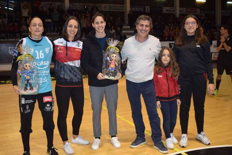 Telde.-Gallegas y grancanarias retomaban la competición tras el parón del Mundial de Japón, rindiendo en los prolegómenos del partido un emotivo homenaje a dos de las integrantes de la Guerreras que se proclamaron subcampeonas del Mundo en Japón: Silvia Navarro y a la ex jugadora del BM Porriño, Alicia Fernández.