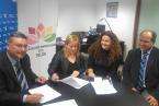 Un momento de la firma del convenio entre ZCA Telde y Banco Sabadell (Foto TA) Un momento de la firma del convenio entre ZCA Telde y Banco Sabadell (Foto TA)