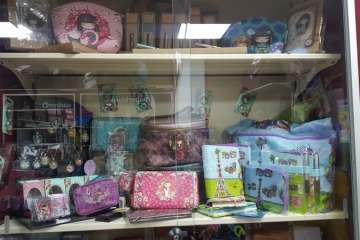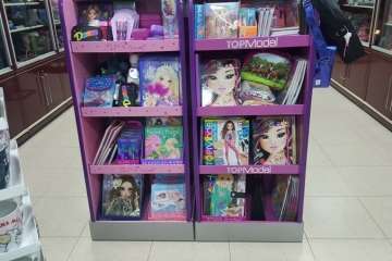 En la sección que Telli destina en su nuevo establecimiento al muestrario de regalos y complementos se puede encontrar asimismo un expositor con bolsos, estuches, set de lápices y rotuladores, bloc de notas, etcétera, de la famosa y selecta marca Top Model.