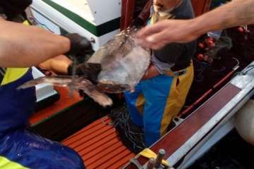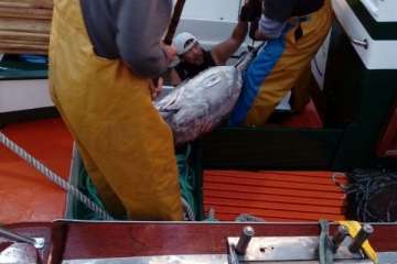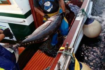 Ahí hicieron su mayor botín. Siete ejemplares que entre todos sumaban unos 600 kilos, a una media de 80 y 90 kilos cada uno. Entre ellos destacaba una pieza mayúscula de alrededor de 140 kilos de peso.