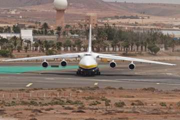 Nota de redacción: Aunque en principio se dio por hecho erróneamente por TA de que se trataba del modelo Antonov 225, el avión más grande del mundo, el que había hecho escala este sábado en Gando, en realidad se trata de su hermano más pequeño, el An-124, que posee también un alto volumen de capacidad de carga, rampas de carga y una gran variedad de equipos de manipulación de carga incorporados. Actualmente hay 26 modelos civiles en operación.