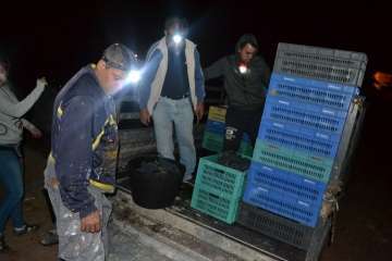 Con el concurso de familiares y amigos, una cuadrilla compuesta por casi 15 personas, la recolección se llevó a cabo a destajo en tres días semanas atrás. Fueron horas y horas cortando racimos en un intenso trabajo que en algunas jornadas comenzó de madrugada para evitar el calor diurno, explicó Florido.