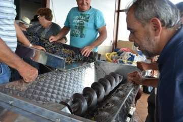 Ahora, el propietario de Bodega Hinojo y sus dos hijas, Cinthia y Yanira Florido, estan ya embarcados en el proceso de elaboración del vino, una tarea que, tras la recolecta, se inició con el estrujado mecánico de la uva seleccionada y que continuó con el depósito y análisis del mosto, prensado y, finalmente, la fase de fermentación en cubas de acero inoxidable durante un tiempo de 2-3 meses.