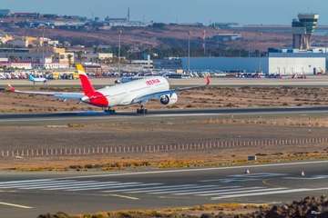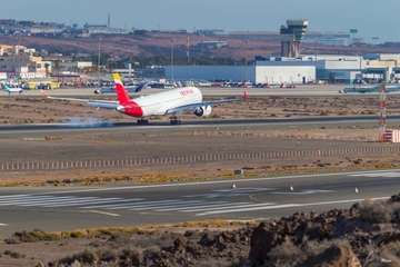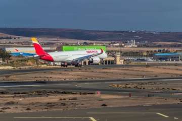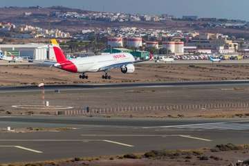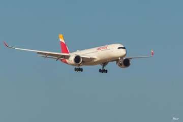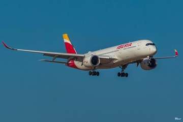 Telde.- El flamante Airbus A350-900, con matrícula EC-MYX de la compañía Iberia y bautizado con el nombre del guitarrista Paco de Lucía, tomó tierra esta mañana por primera vez en el Aeropuerto de Gran Canaria. TA ofrece reportaje gráfico del momento del aterrizaje de la moderna aeronave.