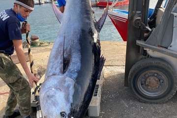 Telde.- Un ejemplar de atún rojo de casi 400 kilos, exactamente 372, fue capturado en las últimas horas en aguas de Gran Canaria por el pesquero Aura del Carmen, de la conocida familia de los Compalunas de Melenara, con sede en el muelle de Taliarte.