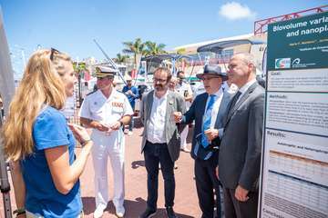 Ibarra resaltó que en la presente edición de FIMAR "nos hemos centrado en la importancia que pueden tener los cultivos de algas en los recintos portuarios para lo que supone la captación de CO2. Hemos trabajado con el Banco Español de Algas para colocar en la entrada del Muelle Santa Catalina un punto que estará activo los próximos meses, en el que podremos ver el nivel de crecimiento de las algas y el nivel de CO2 que puede ir captando. Es un proyecto pionero en Puertos del Estado", añadió, "y hemos querido acompasarlo con la celebración de FIMAR".