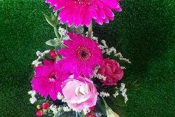El negocio situado en la parte baja de San Juan, junto al parque urbano, cementerio y circunvalación, prepara vistosos arreglos y centros florales