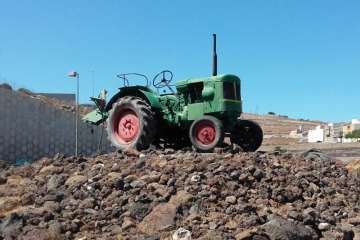 Volviendo del ensueño y retrocediendo en el tiempo sin dejar de mirar al frente, cada vez que en mis idas y venidas al sur, al aeropuerto de Gran Canaria o a cualquier destino que me llevase por la autovía GC 1, desde hace años en la rotonda de Salinetas, aparecía el que hoy es ya un icono, discreto, aparece la silueta verde de un vehículo destinado a labores agrícolas, el tractor Deutz D-40 de 1959, que allí permanece como monumento, recuerdo de una herramienta para arreglar las tierras, que después de varios intentos se logró rehabilitar y adecentar, acción que el compañero Fernando Santana Rivero me informa como testigo de este último destino, cuando definitivamente el Ayuntamiento de Telde decidió ubicarlo sobre esa rotonda, como instrumento mecánico testimonial de aprendizaje y paso por las labores agrícolas ejercitadas en el Campo de Prácticas de la Cruz de Jerez,  por los alumnos que fuimos en aquellos primeros años de 1960. Una placa sobre el mismo  rememora este tiempo: “Tractor utilizado por los Alumnos del Instituto Laboral de Telde en el Campo de Prácticas de Jerez. Ayuntamiento de Telde Enero 1998”.