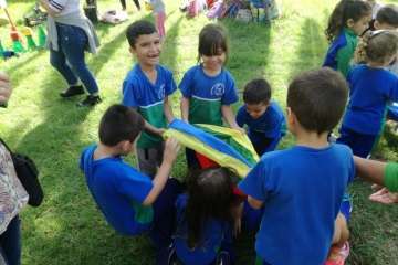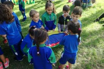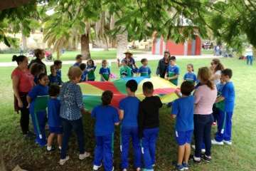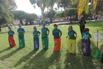 Los escolares de diferentes cursos disfrutaron de juegos como el pañuelito, la sillita con aros, el paracaídas, la carrera de sacos, el brilley, el twister y el de la cuchara, así como de bailes, música y del concurso La búsqueda del tesoro.