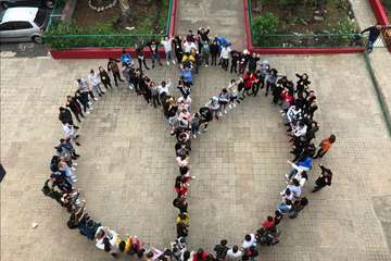 El acto central tuvo lugar en el salón de actos e incluyó actuaciones musicales. Para finalizar, la comunidad educativa representó en el patio el símbolo de la paz.