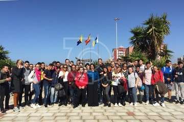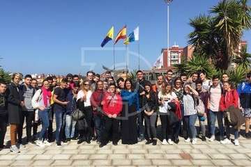 La alcaldesa Carmen Hernández con alumnos del IES Lomo la Herradura (Foto TA)