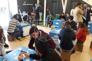 Antes del acto público de proclamación del Premio FPdGi Empresa 2019, el centro Demostrador TIC de INFECAR ( Institución Ferial de Canarias) ha acogido la celebración de un taller innovador donde más de 200 jóvenes canarios han tenido 180 intensos minutos para, a través de una metodología disruptiva, proponer soluciones originales a la problemática planteada: «Rendir MÁS trabajando MEJOR: cómo mejorar la productividad en el trabajo». Esta actividad, que se ha celebrado de 9.00 a 12.00 horas, forma parte del programa especial diseñado por la FPdGi con motivo de la proclamación del Premio FPdGi Empresa 2019 para desarrollar la capacidad creativa, el trabajo en equipo y, el talento joven.