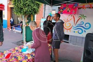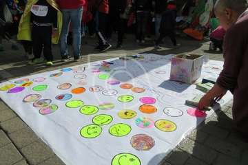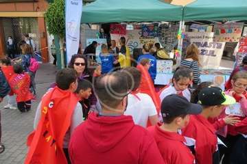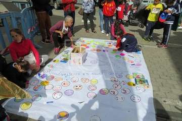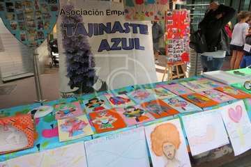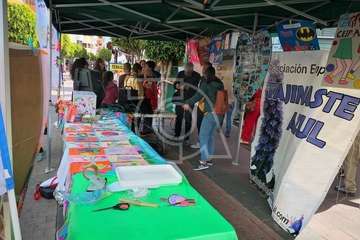 En la plaza se instaló un puesto con un taller de pinta caras y en el que se expusieron los trabajos que los alumnos habían desarrollado durante los días previos a esta jornada solidaria sobre la Asociación Pequeño Valiente en actividades desplegadas en el aula de forma transversal desde las áreas de Música, Religión, Lengua y Matemáticas con el uso de las nuevas tecnologías.