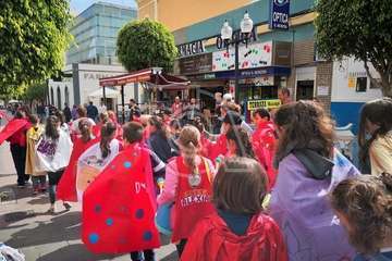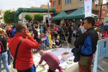 Todas las unitarias del CER (La Breña, Montaña Las Palmas, Adelina Flores Medina, Valle de San Roque, Agustín Manrique De Lara y San Antonio), en las que estudian 110 alumnos de Educación Infantil y Primaria atendidos por un equipo de 17 profesores (tutores y especialistas), se congregaron en este marco de la zona comercial de Los Llanos para celebrar la V Carrera Solidaria.