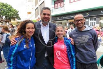 El encuentro tuvo la suerte de contar con el apoyo del atleta teldense Saúl Castro y de las jugadoras Carolina Chinea y Marina Benete del equipo de fútbol sala femenino Preconte Telde, que estamparon su rúbrica en las capas de los escolares que se lo pidieron y corrieron con ellos.