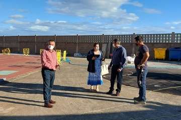 El concejal, acompañado de la arquitecta municipal, María Jesús Santana; así como del responsable técnico de la obra, Aridane Rodríguez; del edil, Álvaro Monzón; y otros trabajadores municipales implicados en la ejecución de los trabajos, explicó que se trata de uno de los proyectos incluidos en el Plan de Mejora de los colegios públicos de primaria y secundaria de la ciudad para 2020 y 2021.