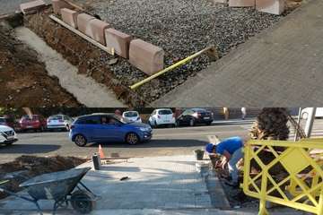 La empresa adjudicataria de la obra ha procedido a demoler y reparar estos muros y a reforzar y consolidar la cimentación de las paredes exteriores del centro para evitar posibles caídas. Por otra parte, también se ha reconstruido la solera y el pavimento en los pasillos y, por último, se ha sustituido una de las puertas de acceso. En relación a la mejora del acceso peatonal se ha dado continuidad al pavimento de losetas y bordillos.