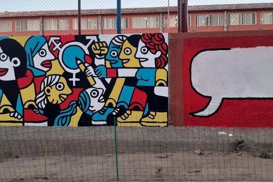 Telde.- El IES El Calero pregona, desde el pasado viernes, a través de un inmenso y colorido mural de 20 metros de largo y 2 metros de alto un mensaje en pos de la igualdad y la superación de los estereotipos de género. En una infinita pared situada debajo de la cancha, en la calle Robert Koch, emergen una serie de dibujos, inconexos entre sí a primera vista, pero que guardan un mensaje conjunto que busca concienciar y sensibilizar sobre el papel de la mujer en la sociedad.