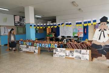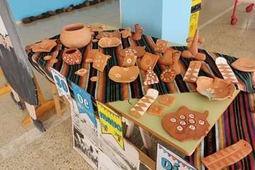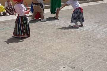 De ahí dimos continuidad al trabajo de Canarias, una degustación típica (bocadillo de chorizo Teror o queso semi, plátanos, chocolatinas Tirma, agua de Teror, y Clipper de fresa), respondamos y en el patio la soga, el elástico, el trompo, la sillita, el pañuelo, el teje, la lucha canaria, la artesanía y los bales tradicionales junto con la música folclórica.... Armonizaron la jornada escolar. Acabamos presentando en el salón de actos el video completo ganador del concurso.