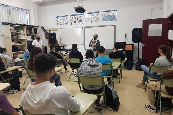 Isabel Torón Macario, hija del poeta teldense Saulo Torón, participó esta semana como conferenciante en las jornadas conmemorativas del Día de la Mujer organizadas por el IES José Arencibia Gil en el marco de su programa de actividades Hablen con ella.