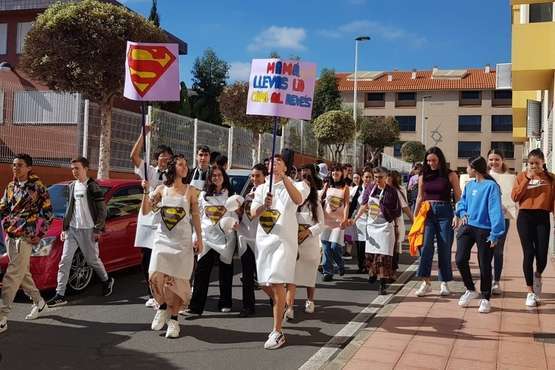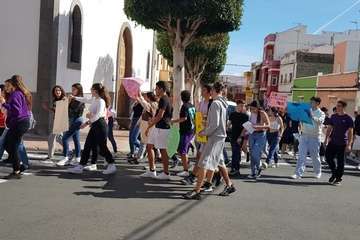 El alumnado del 4º de la ESO y Bachillerato del IES El Calero (Telde), salió este miércoles en manifestación por las calles de barrio con pancartas reivindicativas y solidarias, elaboradas por ellos, con motivo de la celebración del Dia Internacional de las Mujeres.