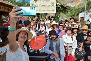 “Los amigos de Joni” es el nombre de la primera carreta. Joni López Duarte se fue demasiado pronto, con apenas 45 años en septiembre de 2018, al luto se sumó la pandemia, pero este año amigos y familiares quisieron que el antiguo notificador municipal e investigador de nuestras tradiciones estuviera presente. Un hermano de Joni, Esteban López, atiende desde la carreta las peticiones de comida y bebidas de parranderos y acompañantes. Hay chicharrones, hay queso, hay papas arrugadas, hay mejunje, hay aceitunas, hay de todo menos prisa, por eso un recorrido de poco más de un kilómetro se tarda varias horas en hacer, en Los Labradores hay que vivir cada minuto con intensidad.