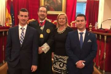 Actuaron como padrinos el magistrado de la Sala de Apelación de la Audiencia Nacional, Enrique López López, y el presidente del Consejo Autonómico Andaluz y presidente del Colegio Oficial de Graduados Sociales de Cádiz y Ceuta, José Blas Fernández Sánchez.