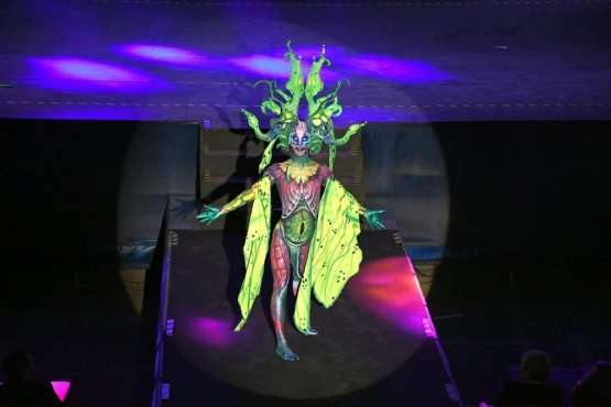Sobre el escenario, que simula una jungla, estuvo acompañado por una representación de la comparsa infantil Los Diamantes (primer premio de concurso de comparsas infantiles de Las Palmas de GC),  las murgas Los Nietos de Sarymánchez (segundo premio de Interpretación, tercero de Vestuario y Premio Criticón del carnaval capitalino) y Las Golisnionas (tercer premio de Vestuario en Ingenio).
