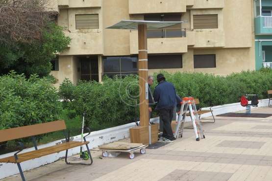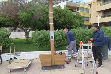 El malestar ciudadano impulsó a Playas a plantearse otro emplazamiento para colocar el tótem tecnológico y, así, finalmente se decantó por posicionarlo en la avenida pero delante de la franja ajardinada con césped que está al norte del paseo de Salinetas, entre varios bancos de asiento.