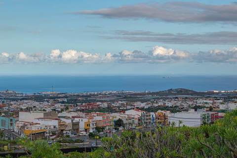 Busco algún recodo por donde garrapatear, pero el corte realizado por la carretera ha dejado una pared vertical y su altura no lo permite. No tengo que alejarme mucho, pues, en la misma curva, una pequeña vaguada formada en los emplastes lávicos sugiere que por ahí puede abordarse. Dicho y hecho. Trepo como puedo y una senda desdibujada me coloca en unos minutos al pie de un enorme torreón eléctrico, uno de los que conforman la línea de alta tensión que une las centrales térmicas de Jinámar y Juan Grande, garantizando el suministro eléctrico en el sur de la isla.