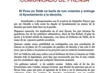 Sin tener en cuenta que de los firmantes en el mandato anterior, primero fue MásXTelde, quién abandonó el pacto firmado en 2015, después de nueve meses de relaciones tormentosas y de una agria polémica final.
