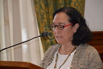 La profesora y doctora universitaria Lidia Esther Robaina Robaina fue la encargada de dar lectura al texto Institucional contra la violencia de género aprobado por el Ayuntamiento de Telde.