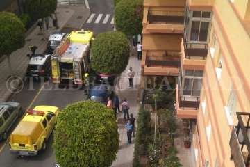 Telde.- Un camión-furgón frigorífico de suministro de yogurts y helados de una conocida marca canaria causó hace unos minutos daños al patrimonio público de la calle de Doctor Chil, en el casco monumental de Telde.