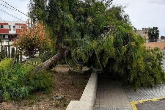 Las fuertes rachas de viento no solo han derribado árboles en Telde, como ocurrió ayer en Las Remudas. En el Valle de Jinámar ha arrancado también la cubierta de una parada de guaguas.