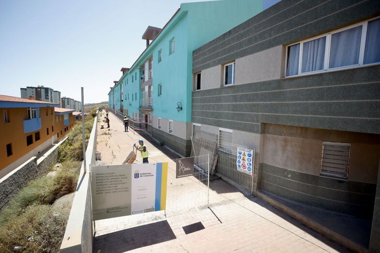 La Consejería de Obras Públicas, Transportes y Vivienda del Gobierno de Canarias, que dirige Sebastián Franquis, ha iniciado esta semana las obras de reparación y refuerzo de un muro de contención que separa dos grupos que suman más de 100 viviendas protegidas en el barrio teldense de Jinámar, así como la mejora de las zonas comunes de estas casas. La Consejería, a través del Instituto Canario de Vivienda (ICAVI), ha contratado por la vía de emergencia, con una inversión de 1.755.746 euros, las obras para la estabilización de este muro de grandes dimensiones que se sitúa entre los grupos de viviendas Los Helechos y Las Violetas, para garantizar la seguridad de las más de cien familias residentes.