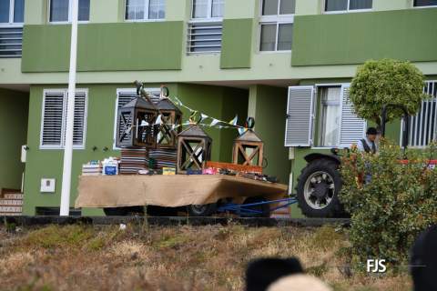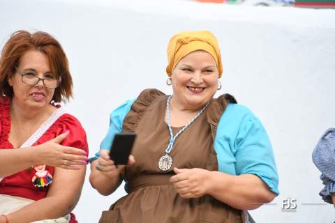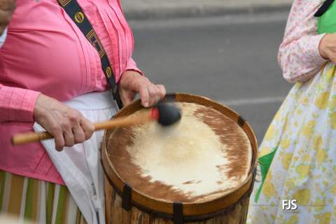 El desfile de cinco carretas y varias agrupaciones folclóricas partió de la calle de Pascal y concluyó ante el trono de la patrona en la portada principal del templo bajo su advocación, donde el párroco Francisco Suárez esperaba a la comitiva de vecinos.