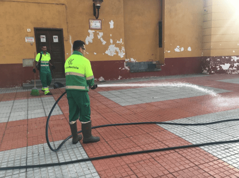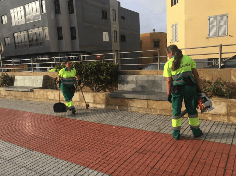 Entre otras tareas, los 25 operarios y operarias de barrido, junto a siete conductores, se encargaron de realizar el barrido manual y mecánico, deshierbe, recogida de trastos y enseres, baldeo e hidrolimpieza de mobiliario urbano y reparación de puestos de contenerización y papeleras.
