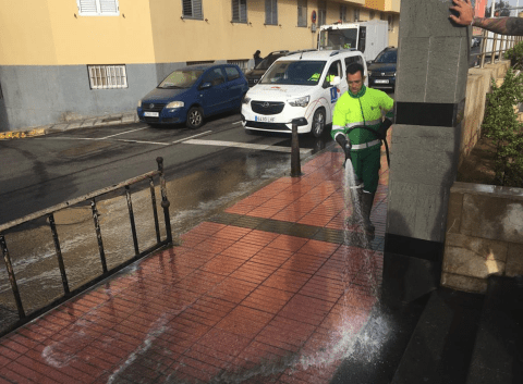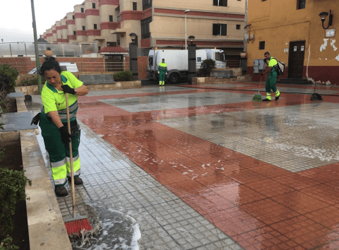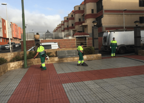El concejal de Limpieza, Eloy Santana, explica que el equipo realizó su actuación en una superficie de 47.000 metros cuadrados, en la que estaba incluida la plaza, además de las calles Amapola, Crisantemo, Estefanota, Lila, Girasol, Palmera, Amapola, Orquídea, Azahar y Fresno, entre otras.