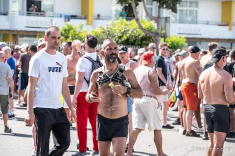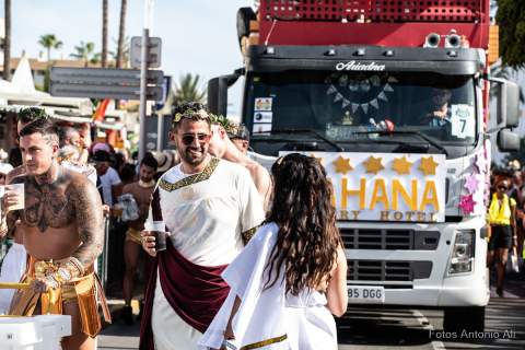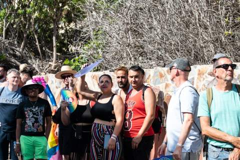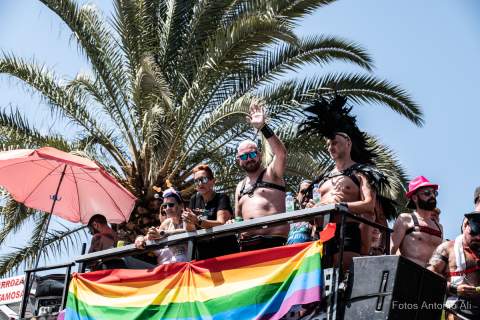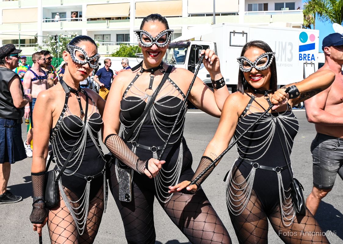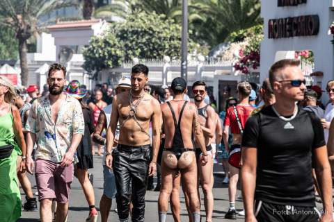 Por las calles de Maspalomas se lucieron cuerpos musculados con bañadores diminutos, complementos de cuero, bronceados relucientes, botas militares y barbas estilizadas. No faltaron los ‘osos’, una subcultura de la comunidad gay con sus cuerpos fornidos y abundante vello facial y corporal, mientras que la comunidad lesbiana se manifestaba con bikinis, tacones, camisas con mangta corta, vestidos y tops decorados con los colores del arco iris.